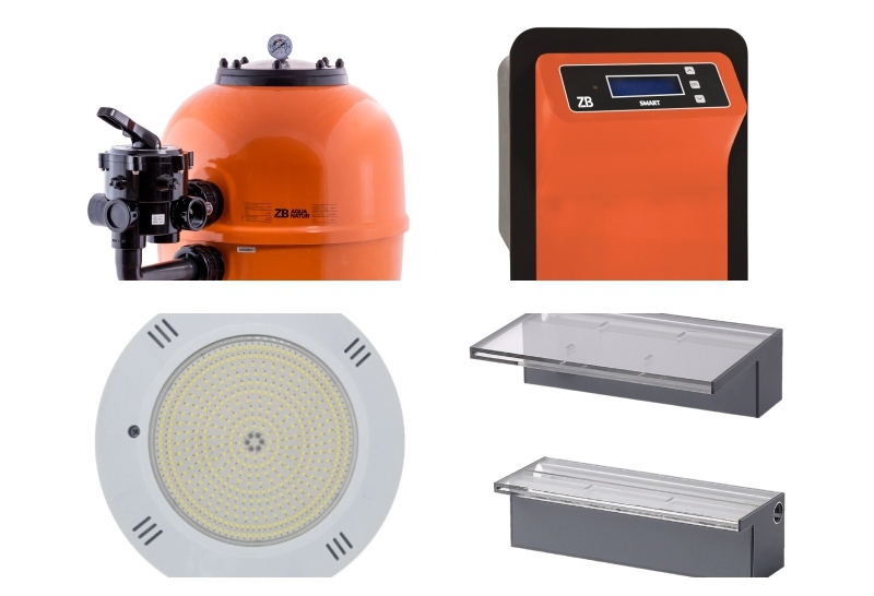 Podemos añadir a su piscina cualquier producto ya sea desde la iluminación con varias modelos de focos, como juegos ornamentales (Cascadas).
